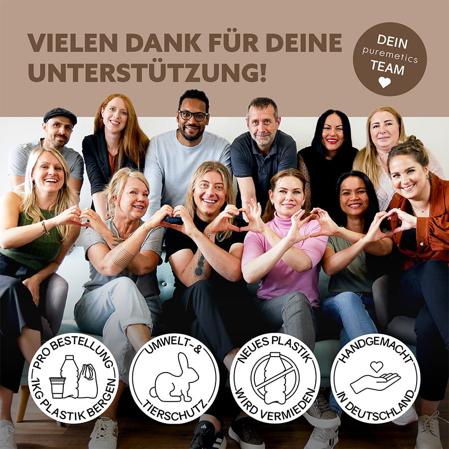Durch die Verwendung unserer plastikfreien Becher kann der Verbrauch von umweltbelastenden Materialien reduziert werden. Zudem ist Papier sehr gut recyclebar. Biologisch abbaubare oder recycelbare Materialien können die Umweltbelastung weiter reduzieren. Durch die Kombination mehrerer Funktionen in einem Produkt bieten unsere 3in1 Dusch-Fluffs eine nachhaltigere Alternative zu konventionellen Duschprodukten und ermöglichen es, einen Beitrag zum Umweltschutz zu leisten, ohne auf hochwertige Pflege verzichten zu müssen.