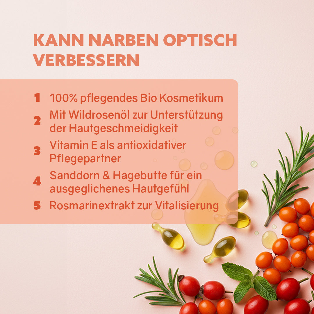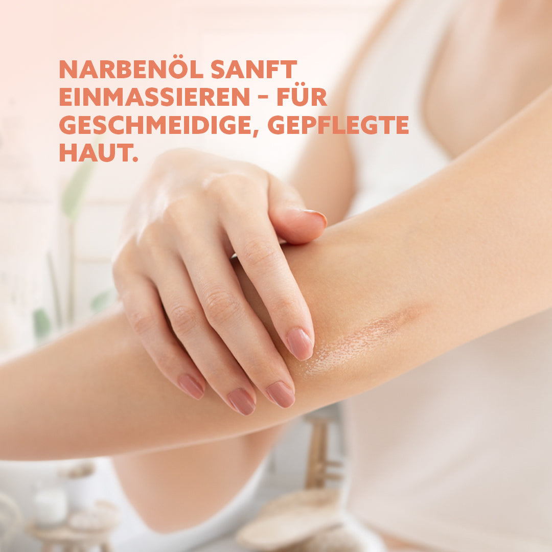 Deine Haut kann sich geschmeidiger und genährter anfühlen. Besonders rund um die Narbe lassen häufig Spannungsgefühle nach, und die Hautoberfläche wirkt insgesamt gepflegter und weicher.